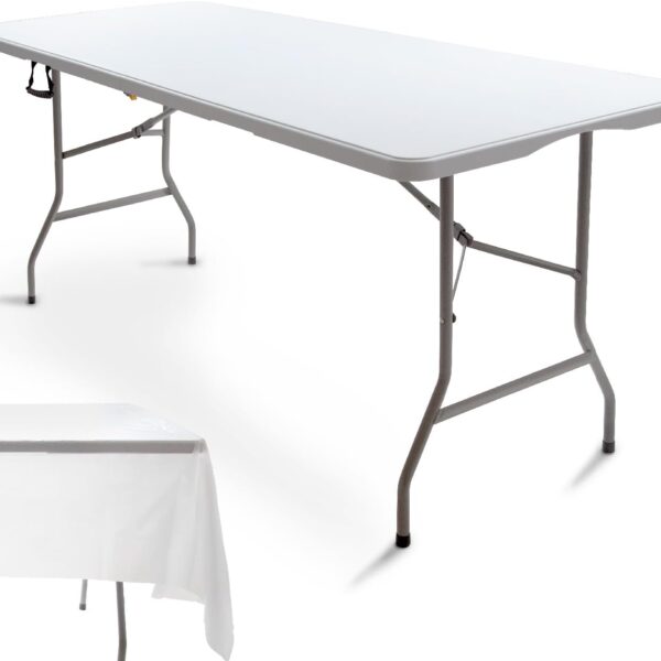6ft Folding Table with Handle & Safety Locks – Portable Picnic & Camping Table, Indoor/Outdoor Dining & Work Table for Weddings & Parties Plastic Construction