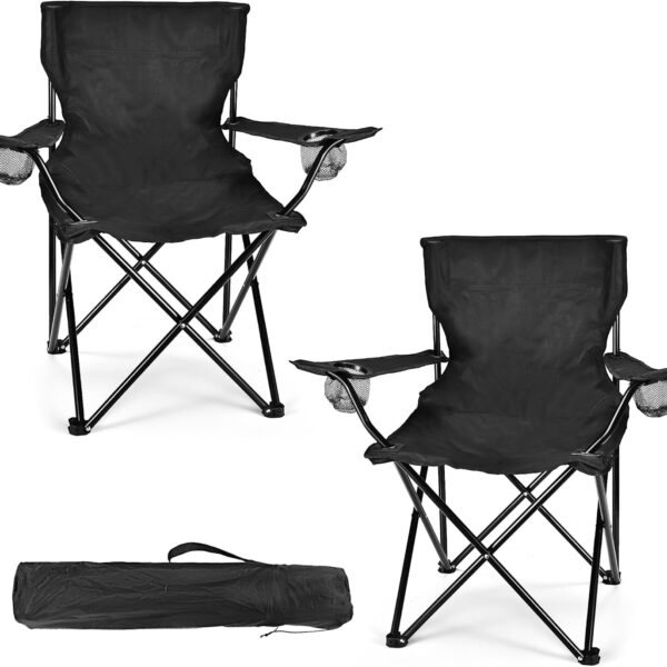 2 Pack Lightweight Camping Chairs for Adults & Teens, 250LBS Capacity Foldable Portable Chairs with Carry Bag, Compact Design for Camping, Beach, Picnics, and Outdoor Events