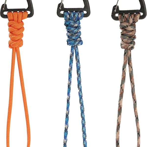 3-Pack Tactical Paracord Carabiner Keychain – Adjustable Rope Lanyard with Triangle Clip for Outdoor Survival, Camping, Hiking, EDC & Fishing Gear Accessories