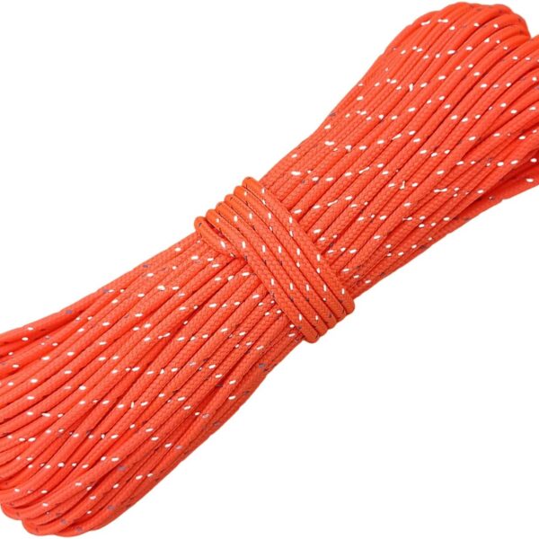 2mm Fluorescent Reflective Guyline Camping Paracord, Ultralight Thin Cord Rope for Tarp Rain Fly Tent Camping, 65 Feet -Orange
